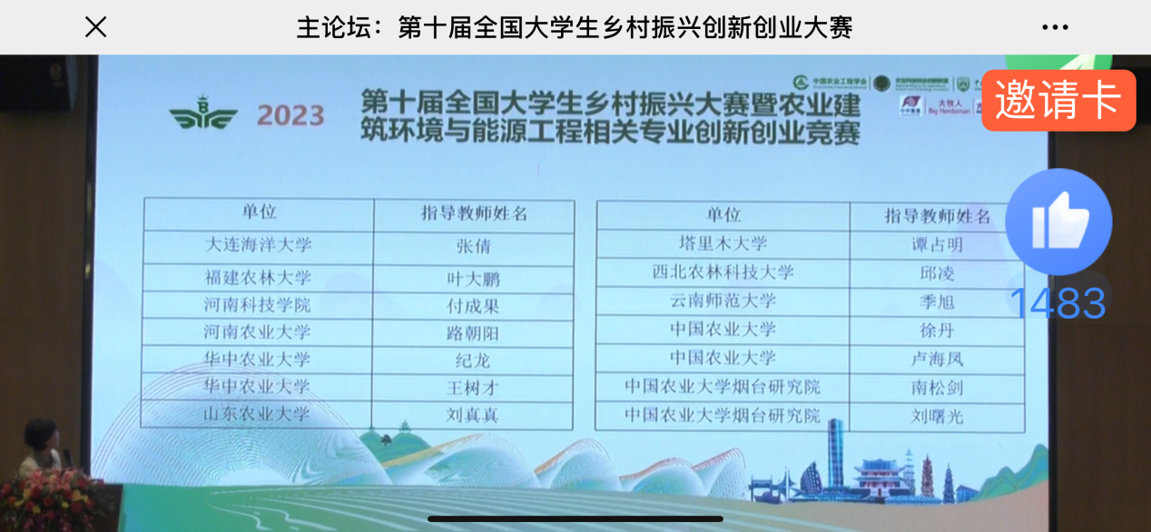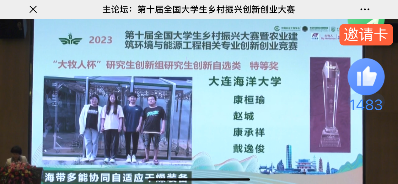4月1日,由中国农业工程学会、中国农业大学、全国农业科技创业创新联盟和全国乡村振兴高校联盟共同主办的第十届全国大学生乡村振兴创新创业大赛暨农业建筑环境与能源工程相关专业双创竞赛在福建农林大学顺利举办。大赛的主题为“乡村振兴与现代农业工程”,旨在提高学生解决实际问题的能力、激发学生的创新创业意识和团队精神。比赛设创新及创业五条赛道,分别设特等奖与一、二、三等奖。来自全国40多所高校的160支代表队进入决赛,爱爱视频 张倩老师指导康桓瑜、赵城、康承祥和戴逸俊同学完成的作品《海带多能协同自适应干燥设备》通过线上作品演示与答辩、50余位专家线下提问与评审,最终闯入决赛并荣获全国特等奖。